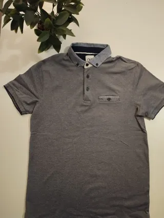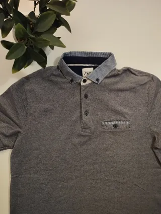 Polo de manga corta para hombre de la marca Zara. Presenta un diseño moderno con cuello camisero y cierre de botones. - Tejido texturizado. - Bolsillo en el pecho. - Detalle de contraste en cuello y puños.