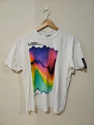 Camiseta de manga corta de Zara para hombre con un diseño gráfico llamativo. - Estampado abstracto en tonos vibrantes. - Cuello redondo. - Manga corta. Camiseta del Zara de hombre multicolor. Talla L 📐 Longitud 66 cm Ancho 50 cm Muy elegante para combinar con todo tipo de prendas.✅️ Esta en oferta black friday a precio regalo. No pierdas la oportunidad. Ofertas de hasta 30% en este perfil comprando mas de un articulo💰 Envíos rapidos 24h ✈️📦 desde el momento de su compra.
