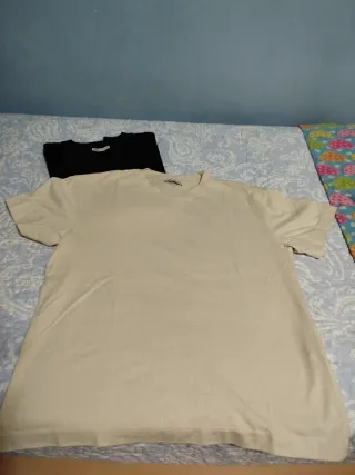 Conjunto de dos camisetas básicas de Zara. Son lisas y versátiles. - Camiseta negra. - Camiseta beige.