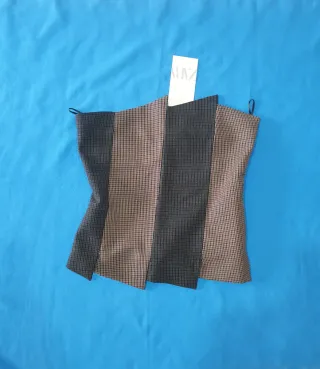 Crop top de hombros descubiertos. #nuevo #beige #marrón #nuevo #tallaxs #zara #sinestrenar #conetiquetas #cuadros #blusa #hombrosdescubiertos