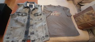 Conjunto de ropa informal para hombre. - Chaleco vaquero con bolsillos. Talla XL de Zara. Precio 12 - Camiseta gris con estampado frontal. Talla M de Seim Precio 5 Se hace lote, las dos cosas 15€ No se envía por Correos