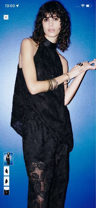 Este top de Zara es una pieza llamativa y elegante. - Diseño de red con lentejuelas plateadas. - Manga larga. - Cuello redondo.