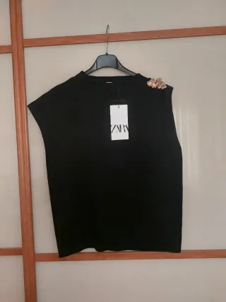 Camiseta básica de Zara, ideal para cualquier ocasión. - Tejido acanalado. - Diseño sin mangas. - Cuello redondo.