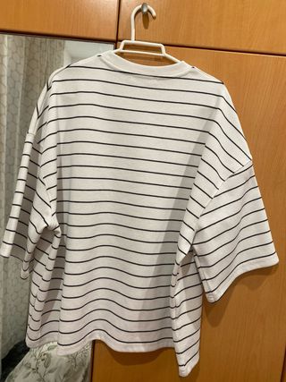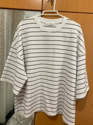 Camiseta de manga corta con un diseño clásico de rayas horizontales. - Diseño de rayas en blanco y negro. - Cuello redondo. - Marca Zara Se aceptan envíos y venta en mano (Barcelona ciudad)