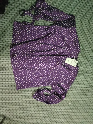 Top elástico de Zara con textura. Color lila grisáceo. Queda entallado pero es cómodo. Poco uso.
