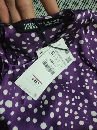 Elegante top de Zara sin tirantes, con un diseño drapeado y asimétrico que le da un toque moderno. Su tejido satinado aporta un brillo sutil. Talla S pequeña - Diseño palabra de honor. - Acabado drapeado. - Corte asimétrico.