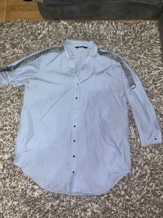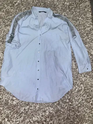 Blusa de Zara con un diseño moderno y detalles únicos. - Tejido ligero y cómodo. - Adornos de cadena en los hombros. - Cuello camisero. - Cierre de botones.