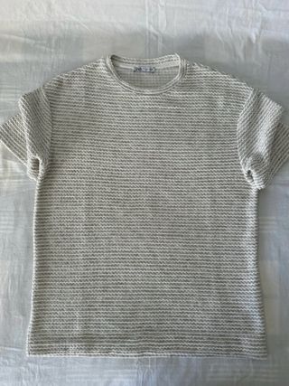 Camiseta de manga corta de Zara en color blanco. Presenta un tejido texturizado tipo gofre. - Cuello redondo. - Bajo curvo.