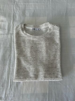 Camiseta de Zara con un diseño de rayas sutiles. - Confeccionada en algodón. - Combinación de colores beige y gris.