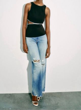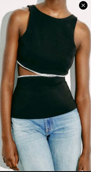 Top negro con cortes y ribete brillante