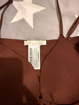 Top de tirantes con diseño favorecedor. - Tejido de poliamida. - Color marrón. Nuevo sin estrenar