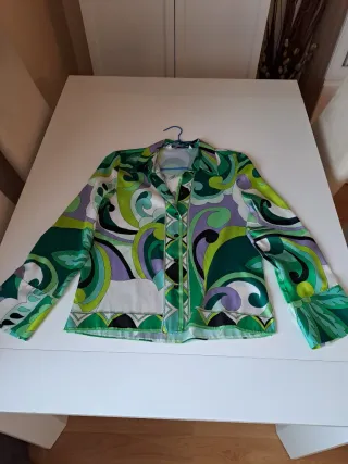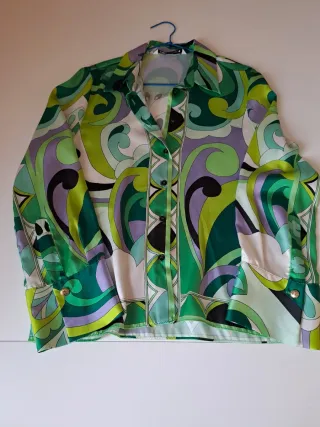Camisa de Zara con un llamativo estampado. - Diseño con cuello - Manga larga - Cierre de botones - Puños con detalle de color