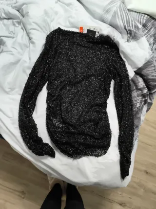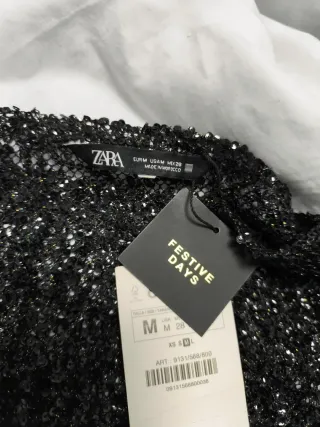 Elegante top de Zara con un diseño brillante de lentejuelas. - Color negro con detalles plateados. - Diseño sin mangas.