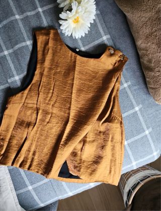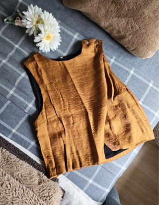 Elegante top de Zara con un acabado satinado que le da un toque sofisticado. - Diseño sin mangas. - Cierre con botones en la parte trasera.