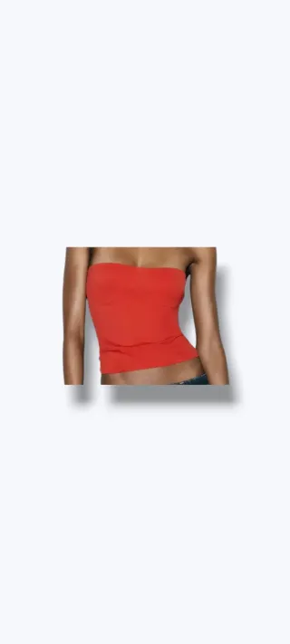 Top bandeau, de escote recto y hombros descubiertos. Talle S