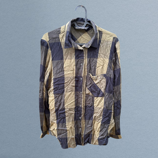 Camisa de cuadros con un diseño moderno y llamativo. - Cuadros en tonos azul y marrón. - Bolsillo en el pecho con detalles metálicos.