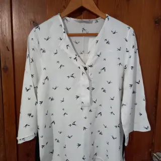 Camisa elegante con un bonito estampado de pájaros en contraste. - Diseño de manga 3/4. - Cuello con detalle de botón. - Tejido ligero y fluido. Solo envios