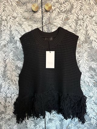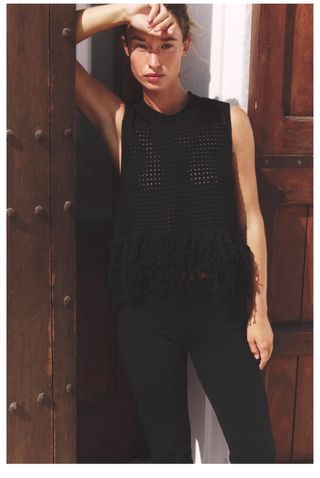 Top de Zara con un diseño moderno y detalles únicos. - Tejido con textura cuadrillé. - Adornado con flecos en el bajo. - Diseño sin mangas.