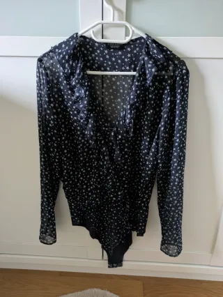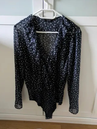Body de Zara con un llamativo estampado floral. - Diseño de manga larga. - Cierre de cremallera en la espalda. - Escote pronunciado en la espalda.