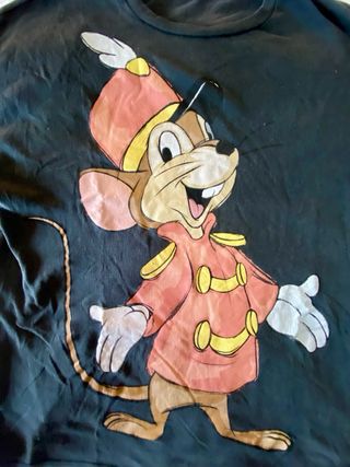Camiseta Negra del Raton Timothy de Dumbo (Disney) en Talla M de Zara - Talla M (Girlie / Petit / Corte Femenino) - Medidas: Largo 64cm x Ancho 53cm - Estado: Muy bueno SOLO ENVIO. PROTECCION TOTAL.