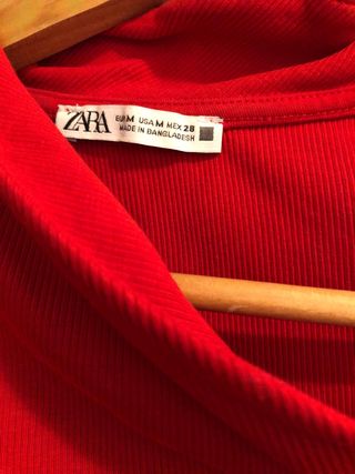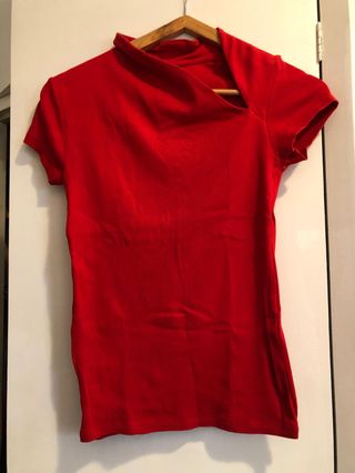 Camiseta Zara Roja Cuello Asimétrico Talla M