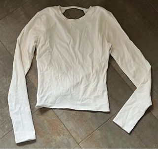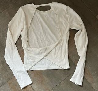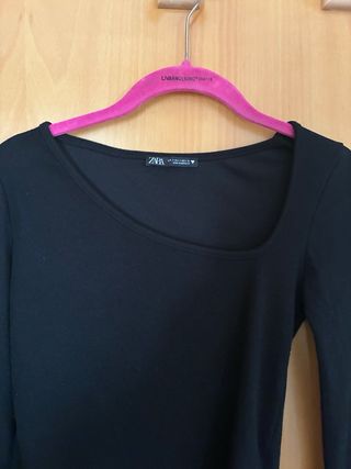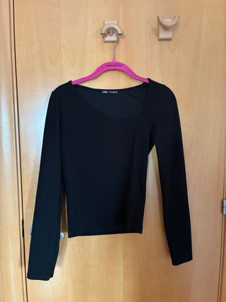 Camiseta de manga larga de Zara. - Diseño con abertura en la espalda. - Cuello redondo.