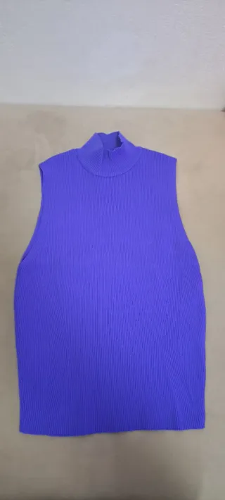 Camiseta sin mangas de Zara con cuello alto. - Tejido de canalé. - Diseño ajustado. - Sin mangas.