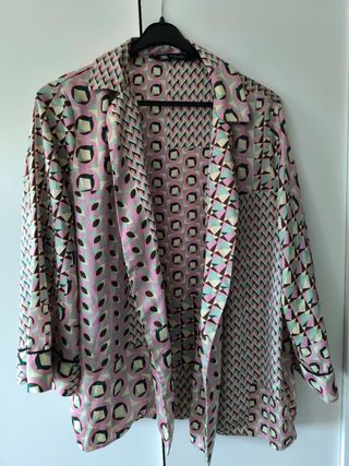 Camisa de Zara con un llamativo estampado geométrico y de círculos. - Diseño de manga larga. - Cuello camisero. - Tejido ligero y fluido.