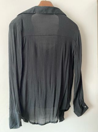 Blusa negra semitransparente con frontal de camiseta de tirantes cosida. - Tejido ligero y con textura. - Cierre de botones. - Manga larga.