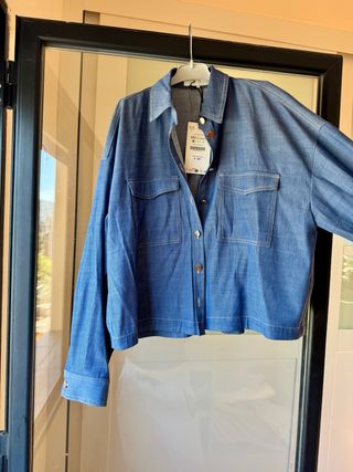 Camisa vaquera de Zara en color azul. - Diseño de corte recto. - Dos bolsillos en la parte delantera. - Cierre de botones metálicos.