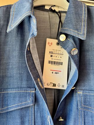 Chaleco vaquero de la marca Zara, perfecto para añadir un toque moderno a tu estilo. - Diseño con tachuelas en los bolsillos. - Corte moderno y favorecedor. - Tejido vaquero resistente y duradero.