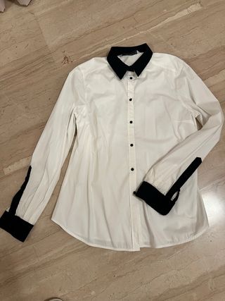 Elegante camisa de Zara con detalles en contraste. - Cuello y puños en color negro. - Cierre de botones.
