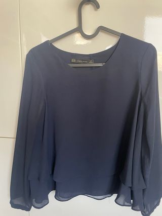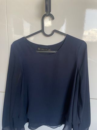 Elegante blusa de Zara con manga larga. - Diseño fluido y ligero. - Cuello redondo. - Ideal para ocasiones formales o informales.