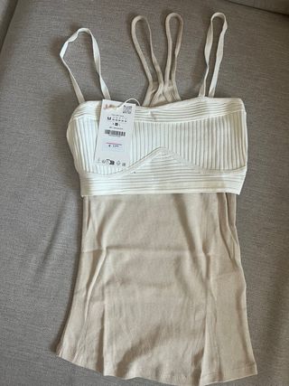 Top de Zara con un diseño moderno y versátil. - Tejido acanalado en la parte superior. - Detalle de tirantes finos. - Base de tejido liso. #zaratop38 #zarawoman38 #zaramujer38 #vesttop