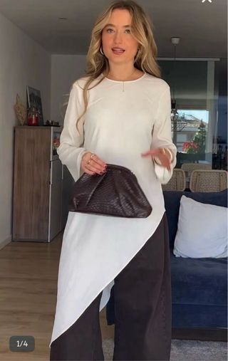 Blusa fluida de Zara con un diseño asimétrico. - Corte moderno y favorecedor. - Detalle de pedrería en el cuello.