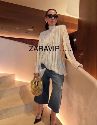 blusa Zara trasparente plisado detalle