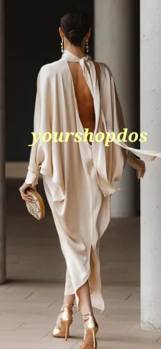 Elegante túnica de Zara de edición limitada, confeccionada en satén. - Diseño fluido y sofisticado. - Color cava - Talla S - cuello alto manga larga - abertura en la espalda ajustable con lazo - bajo acabado en abertura - precio orginal 99 €