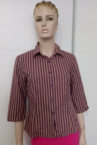 Camisa de manga 3/4 con estampado de rayas verticales. Muy bien cuidado. Talla S-36 Pecho 46 cm×2 Largo 55 cm Algodón - Cuello camisero. - Cierre de botones. - Corte entallado.