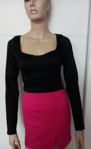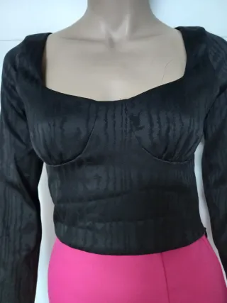 Elegante top de Zara con un diseño moderno y favorecedor. Perfecto para combinar con diferentes prendas. Algodón y Poliester. Pecho 44 cm×2 Largo 34 cm - Diseño de manga larga. - Escote cuadrado. - Tejido con textura.