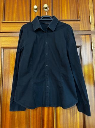 Elegante camisa negra de Zara. - Diseño con cuello en V.