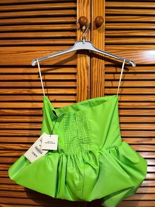 Top con un diseño llamativo y moderno. tipo corset, es un cuerpo rígido de woman. - Color verde lima vibrante. - Silueta con volumen. - Detalle abullonado en el bajo.