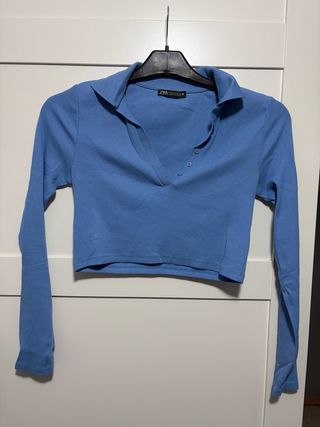 Top de Zara con cuello polo y botones. - Diseño acanalado. - Manga larga. - Corte cropped.