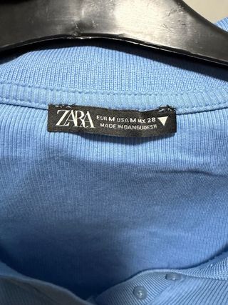 Camisetas Zara Manga Larga Botones Blanca y Azul