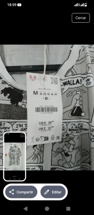 Camiseta de Zara con estampado de cómic de la Pantera Rosa. Aún conserva la etiqueta, está nueva. - Diseño de cómic. - Manga corta. - Cuello redondo.