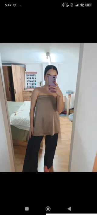 Top de satén con un bonito acabado brillante. Su diseño sin tirantes lo hace ideal para ocasiones especiales o para un look más arreglado. - Tejido suave y fluido. - Diseño versátil.