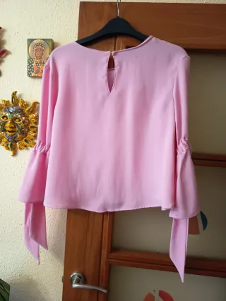Blusa rosa con volantes y lazos