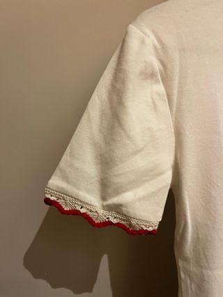 Camiseta básica de manga corta con un toque especial. - Detalle de encaje en los puños. - Cuello redondo.