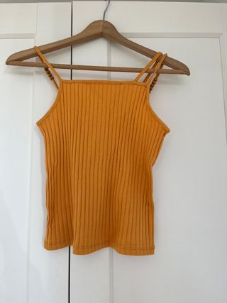 Top de punto con tirantes finos y detalle de cuentas. - Tejido acanalado. - Tirantes finos. - Detalle de cuentas en los tirantes.
