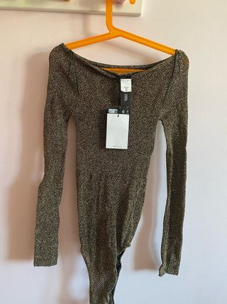 Body de manga larga con un acabado brillante y metalizado. Su diseño es elegante y llamativo. - Tejido elástico. - Cuello barco.