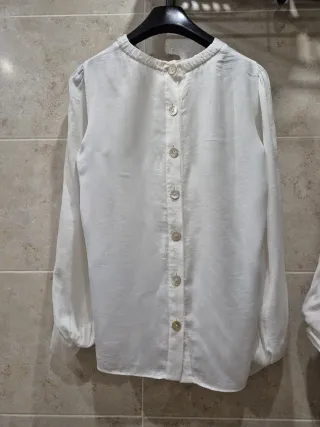 Elegante blusa de Zara con un diseño clásico y versátil. Talla M,L - Cuello redondo con detalle fruncido.Rebajada - Cierre de botones en la parte trasera. - Mangas largas abullonadas con puño. - Tejido ligero y con textura.